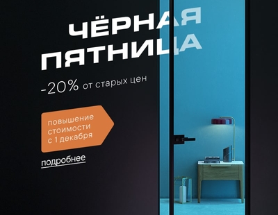 Друзья, встречайте «Чёрную пятницу»! Самые актуальные скидки года с 7 по 25 ноября: −20% на дверной комплект, стеновые и наддверные панели. Акция распространяется на полотно, деревянный или скрытый короб, фигурные и прямые наличники, карнизы, доборы и соединительные элементы.
