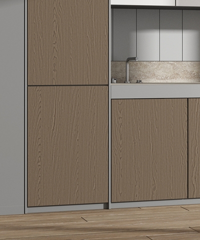 В ассортименте Волховец представлены фасады в древесных и монохромных отделках: натуральном шпоне, мультишпоне, эмали, декоративных искусственных покрытиях ПЭТ и ламинатин, что позволяет подобрать лучшее решение по стилю и цене.