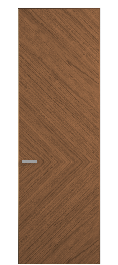 Полотно Rift в скрытом алюминиевом коробе становится полноценным элементом декора. В коллекции представлено 9 моделей дверей в высоте до 3 метров. Рисунок раскладки шпона варьируется от простого до сложного. «Рубашка» для каждого полотна подбирается вручную по цвету, текстуре и фактуре.
