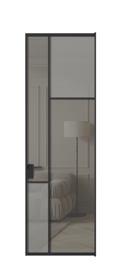 Каждая дверь изготавливается индивидуально по точным замерам*. Возможная ширина двери 600–950 мм с шагом 50 мм. Высота двери — от 2000–3000 мм с шагом 10 мм. Доступно решение «дверь в потолок».