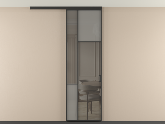 Во всех алюминиевых перегородках, независимо от типа установки, используется компланарный раздвижной механизм, благодаря которому декоративная крышка и полотно находятся в одной плоскости.
