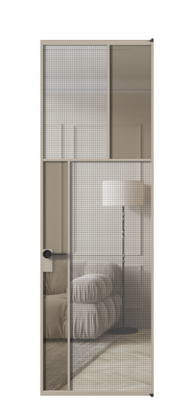 АЛПЛ041.22 Алюминий бисквитный Декоративное стекло с сеткой "Mesh silver", триплекс, 6 мм + Прозрачное бронзовое стекло, триплекс