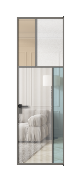 Лаконичный разделительный профиль внутренней раскладки полотна обеспечивает эстетический внешний вид конструкции и идеальную стыковку вставок из стекла.