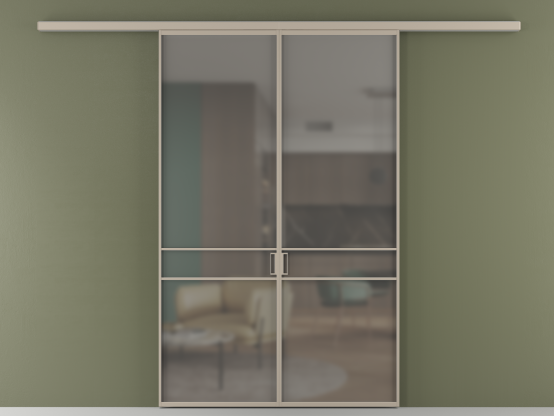 Во всех алюминиевых перегородках, независимо от типа установки, используется компланарный раздвижной механизм, благодаря которому декоративная крышка и полотно находятся в одной плоскости.