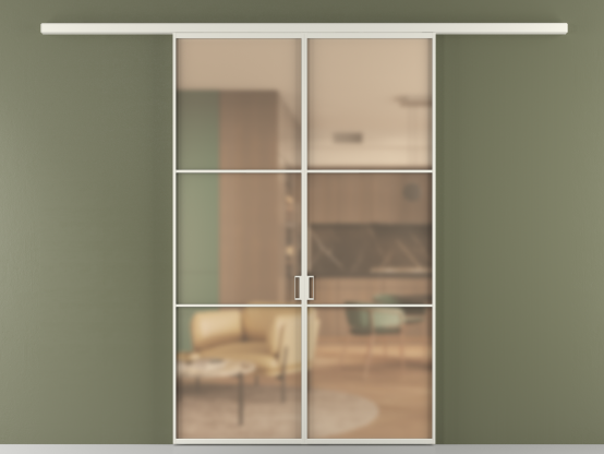 Во всех алюминиевых перегородках, независимо от типа установки, используется компланарный раздвижной механизм, благодаря которому декоративная крышка и полотно находятся в одной плоскости.