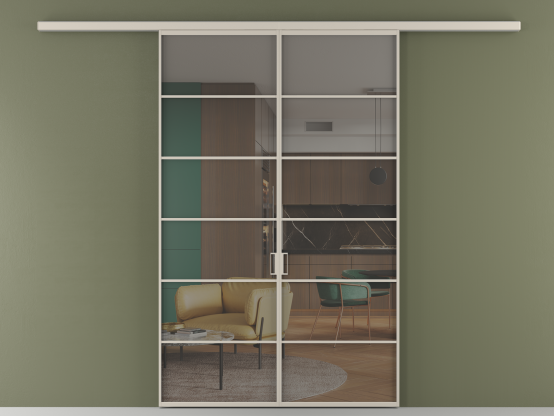 Во всех алюминиевых перегородках, независимо от типа установки, используется компланарный раздвижной механизм, благодаря которому декоративная крышка и полотно находятся в одной плоскости.