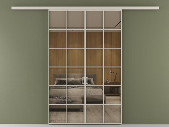 Во всех алюминиевых перегородках, независимо от типа установки, используется компланарный раздвижной механизм, благодаря которому декоративная крышка и полотно находятся в одной плоскости.