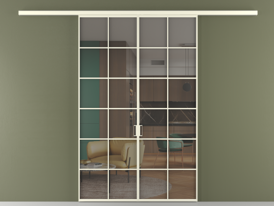 Алюминиевые перегородки имеют единый профиль с алюминиевыми дверьми и легко сочетаются в одном пространстве, не перегружая его. Также их можно комбинировать в интерьере с полотнами из нашего стандартного ассортимента. Помимо этого, система алюминиевых перегородок и дверей координируется со стеновыми панелями Волховец.