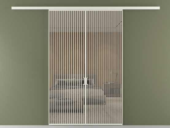 Во всех алюминиевых перегородках, независимо от типа установки, используется компланарный раздвижной механизм, благодаря которому декоративная крышка и полотно находятся в одной плоскости.