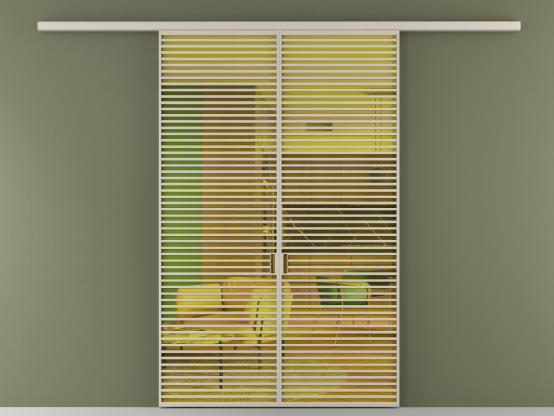 Дополнительно на раздвижную двустворчатую перегородку вдоль стены и четырёхстворчатую перегородку внутри проёма с двумя неподвижным полотнами можно установить механизм синхронного открывания — при открывании одной створки, вторая открывается автоматически.