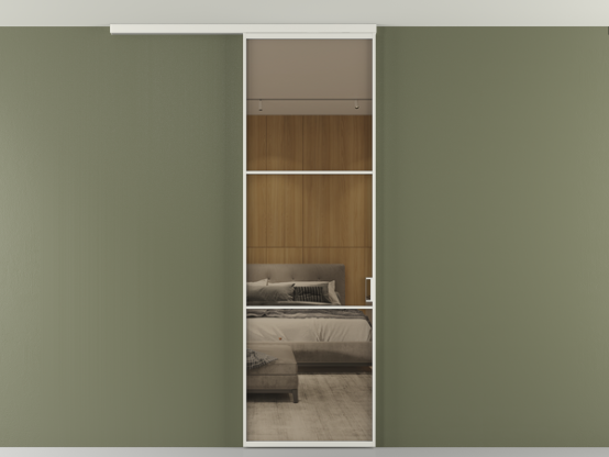 Во всех алюминиевых перегородках, независимо от типа установки, используется компланарный раздвижной механизм, благодаря которому декоративная крышка и полотно находятся в одной плоскости.