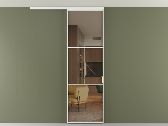 Во всех алюминиевых перегородках, независимо от типа установки, используется компланарный раздвижной механизм, благодаря которому декоративная крышка и полотно находятся в одной плоскости.
