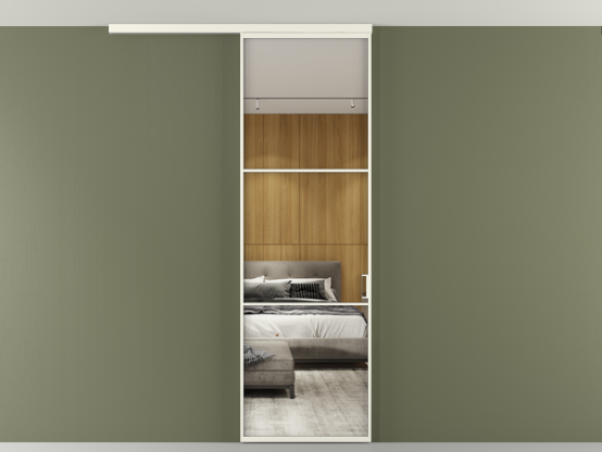Во всех алюминиевых перегородках, независимо от типа установки, используется компланарный раздвижной механизм, благодаря которому декоративная крышка и полотно находятся в одной плоскости.