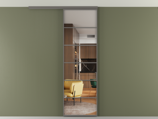 Во всех алюминиевых перегородках, независимо от типа установки, используется компланарный раздвижной механизм, благодаря которому декоративная крышка и полотно находятся в одной плоскости.