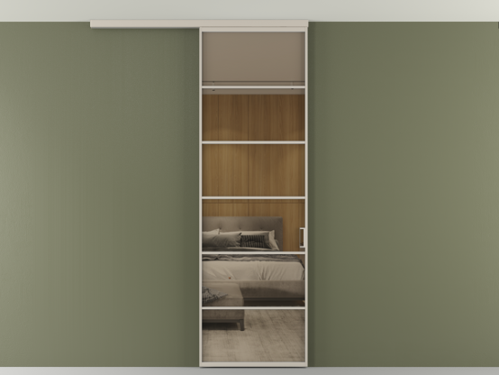Во всех алюминиевых перегородках, независимо от типа установки, используется компланарный раздвижной механизм, благодаря которому декоративная крышка и полотно находятся в одной плоскости.