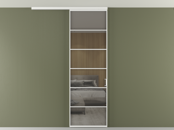 Во всех алюминиевых перегородках, независимо от типа установки, используется компланарный раздвижной механизм, благодаря которому декоративная крышка и полотно находятся в одной плоскости.