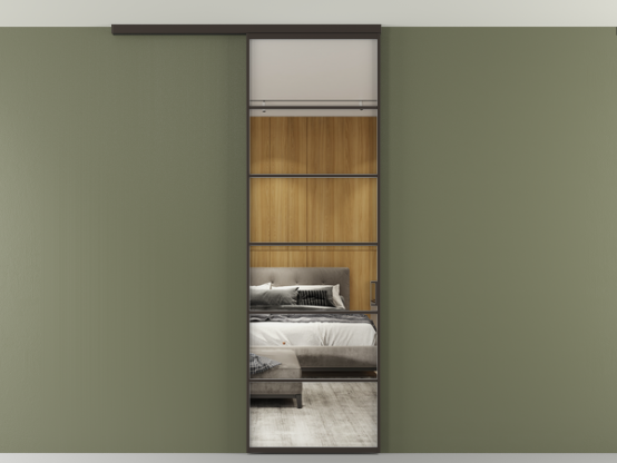 Во всех алюминиевых перегородках, независимо от типа установки, используется компланарный раздвижной механизм, благодаря которому декоративная крышка и полотно находятся в одной плоскости.