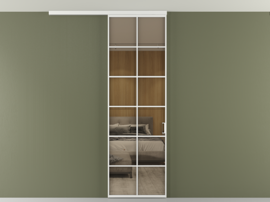 Во всех алюминиевых перегородках, независимо от типа установки, используется компланарный раздвижной механизм, благодаря которому декоративная крышка и полотно находятся в одной плоскости.