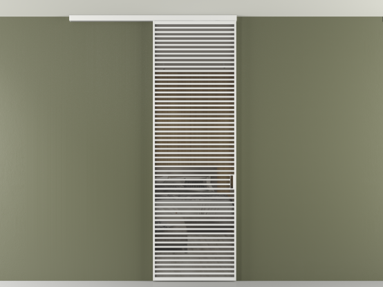 Во всех алюминиевых перегородках, независимо от типа установки, используется компланарный раздвижной механизм, благодаря которому декоративная крышка и полотно находятся в одной плоскости.