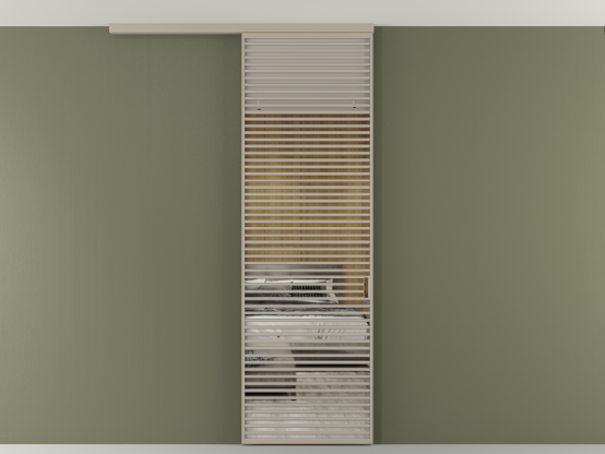 Во всех алюминиевых перегородках, независимо от типа установки, используется компланарный раздвижной механизм, благодаря которому декоративная крышка и полотно находятся в одной плоскости.