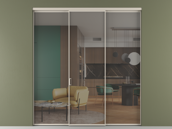 Во всех алюминиевых перегородках, независимо от типа установки, используется компланарный раздвижной механизм, благодаря которому декоративная крышка и полотно находятся в одной плоскости.