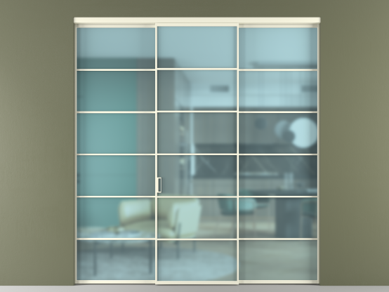 Во всех алюминиевых перегородках, независимо от типа установки, используется компланарный раздвижной механизм, благодаря которому декоративная крышка и полотно находятся в одной плоскости.