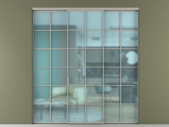 Дополнительно на раздвижную двустворчатую перегородку вдоль стены и четырёхстворчатую перегородку внутри проёма с двумя неподвижным полотнами можно установить механизм синхронного открывания — при открывании одной створки, вторая открывается автоматически.