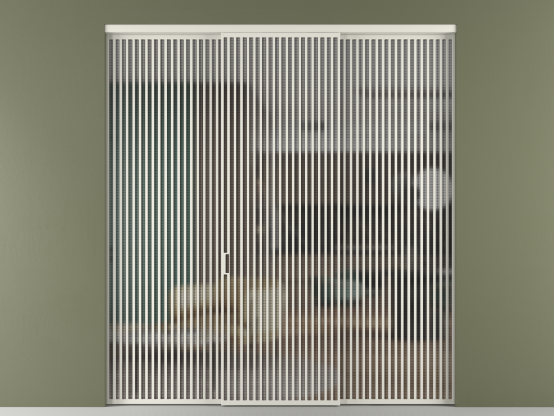 Во всех алюминиевых перегородках, независимо от типа установки, используется компланарный раздвижной механизм, благодаря которому декоративная крышка и полотно находятся в одной плоскости.