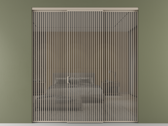 Во всех алюминиевых перегородках, независимо от типа установки, используется компланарный раздвижной механизм, благодаря которому декоративная крышка и полотно находятся в одной плоскости.