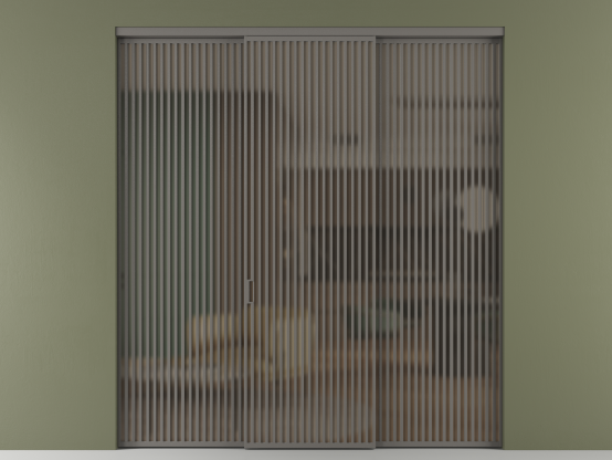 Во всех алюминиевых перегородках, независимо от типа установки, используется компланарный раздвижной механизм, благодаря которому декоративная крышка и полотно находятся в одной плоскости.
