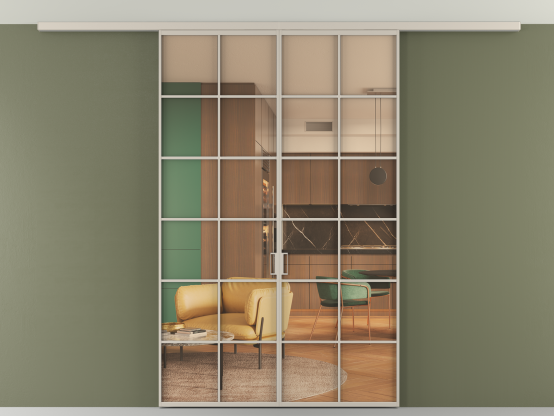 Алюминиевые перегородки имеют единый профиль с алюминиевыми дверьми и легко сочетаются в одном пространстве, не перегружая его. Также их можно комбинировать в интерьере с полотнами из нашего стандартного ассортимента. Помимо этого, система алюминиевых перегородок и дверей координируется со стеновыми панелями Волховец.