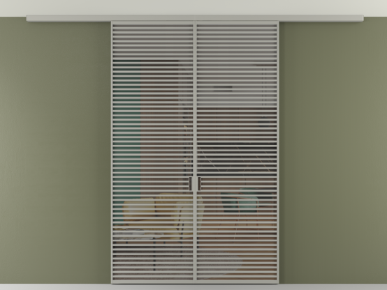 Дополнительно на раздвижную двустворчатую перегородку вдоль стены и четырёхстворчатую перегородку внутри проёма с двумя неподвижным полотнами можно установить механизм синхронного открывания — при открывании одной створки, вторая открывается автоматически.