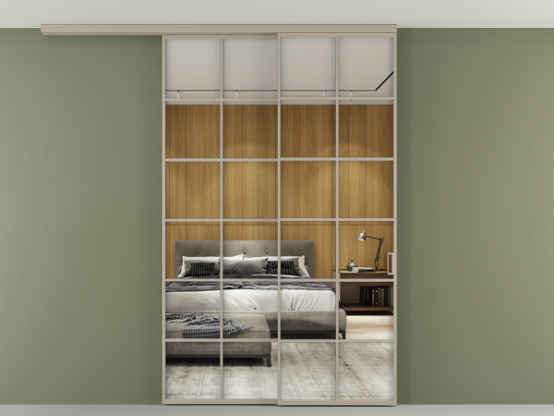 Во всех алюминиевых перегородках, независимо от типа установки, используется компланарный раздвижной механизм, благодаря которому декоративная крышка и полотно находятся в одной плоскости.