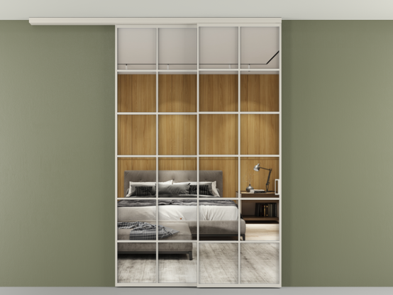 Во всех алюминиевых перегородках, независимо от типа установки, используется компланарный раздвижной механизм, благодаря которому декоративная крышка и полотно находятся в одной плоскости.