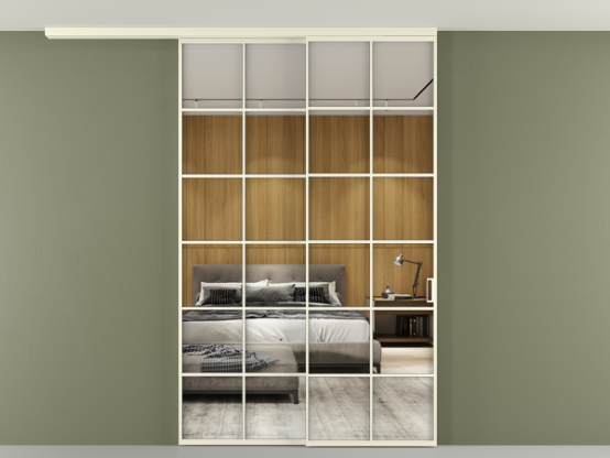 Во всех алюминиевых перегородках, независимо от типа установки, используется компланарный раздвижной механизм, благодаря которому декоративная крышка и полотно находятся в одной плоскости.