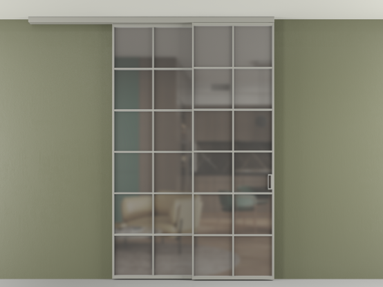 Во всех алюминиевых перегородках, независимо от типа установки, используется компланарный раздвижной механизм, благодаря которому декоративная крышка и полотно находятся в одной плоскости.