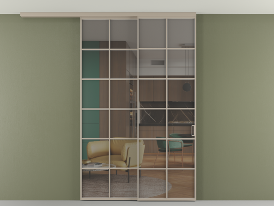 Во всех алюминиевых перегородках, независимо от типа установки, используется компланарный раздвижной механизм, благодаря которому декоративная крышка и полотно находятся в одной плоскости.