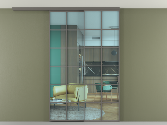 Алюминиевые перегородки имеют единый профиль с алюминиевыми дверьми и легко сочетаются в одном пространстве, не перегружая его. Также их можно комбинировать в интерьере с полотнами из нашего стандартного ассортимента. Помимо этого, система алюминиевых перегородок и дверей координируется со стеновыми панелями Волховец.