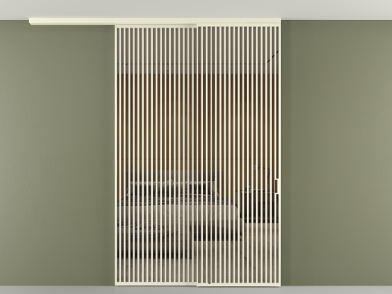 Во всех алюминиевых перегородках, независимо от типа установки, используется компланарный раздвижной механизм, благодаря которому декоративная крышка и полотно находятся в одной плоскости.