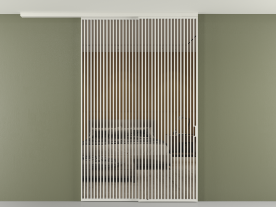 Во всех алюминиевых перегородках, независимо от типа установки, используется компланарный раздвижной механизм, благодаря которому декоративная крышка и полотно находятся в одной плоскости.
