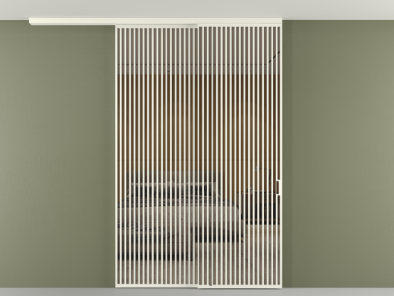 Перегородка Формато вдоль стены на потолок 2 створки с синхронным механизмом