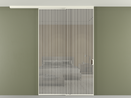 Во всех алюминиевых перегородках, независимо от типа установки, используется компланарный раздвижной механизм, благодаря которому декоративная крышка и полотно находятся в одной плоскости.