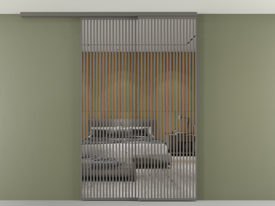 Во всех алюминиевых перегородках, независимо от типа установки, используется компланарный раздвижной механизм, благодаря которому декоративная крышка и полотно находятся в одной плоскости.