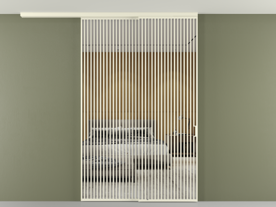 Во всех алюминиевых перегородках, независимо от типа установки, используется компланарный раздвижной механизм, благодаря которому декоративная крышка и полотно находятся в одной плоскости.