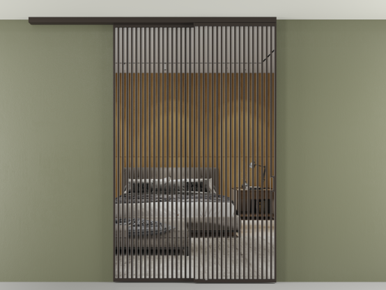 Во всех алюминиевых перегородках, независимо от типа установки, используется компланарный раздвижной механизм, благодаря которому декоративная крышка и полотно находятся в одной плоскости.