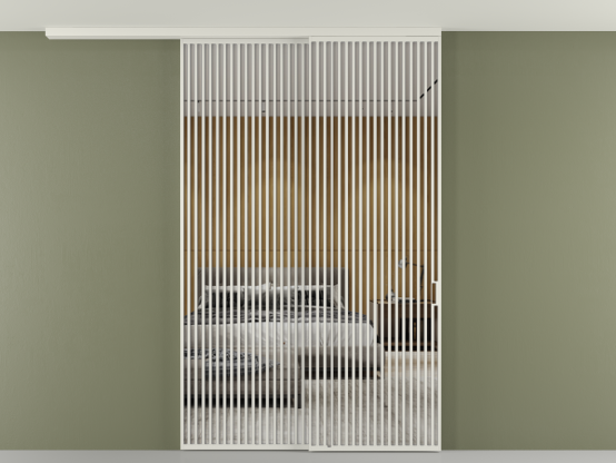 Во всех алюминиевых перегородках, независимо от типа установки, используется компланарный раздвижной механизм, благодаря которому декоративная крышка и полотно находятся в одной плоскости.