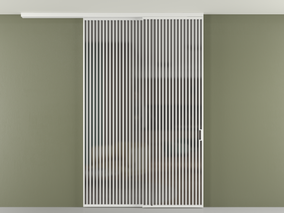 Во всех алюминиевых перегородках, независимо от типа установки, используется компланарный раздвижной механизм, благодаря которому декоративная крышка и полотно находятся в одной плоскости.