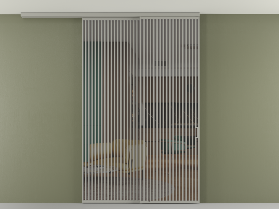 Во всех алюминиевых перегородках, независимо от типа установки, используется компланарный раздвижной механизм, благодаря которому декоративная крышка и полотно находятся в одной плоскости.