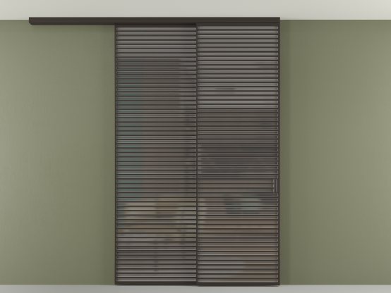 Во всех алюминиевых перегородках, независимо от типа установки, используется компланарный раздвижной механизм, благодаря которому декоративная крышка и полотно находятся в одной плоскости.