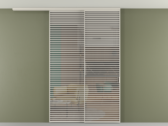 Во всех алюминиевых перегородках, независимо от типа установки, используется компланарный раздвижной механизм, благодаря которому декоративная крышка и полотно находятся в одной плоскости.